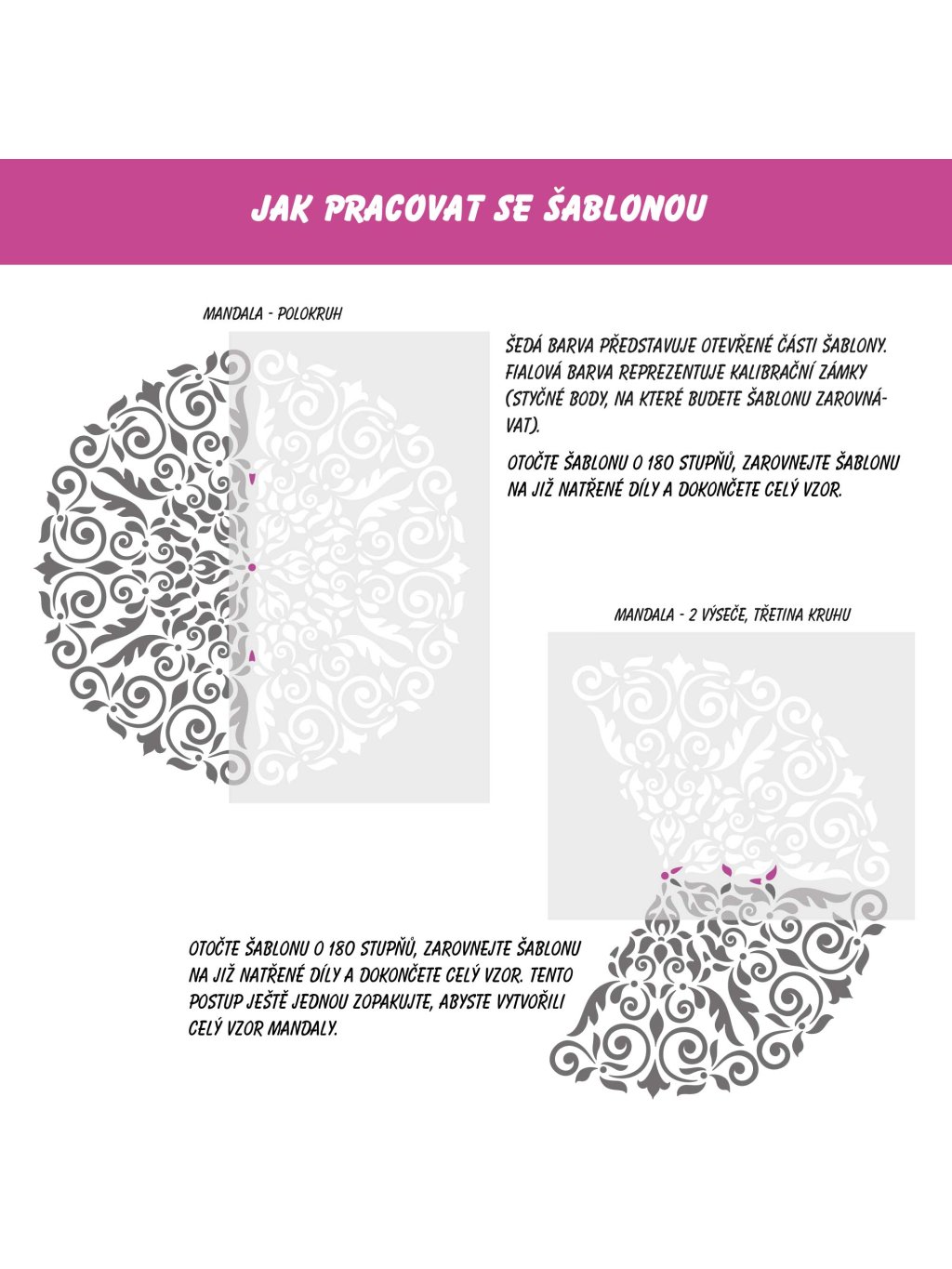 - Šablona Mandala - polokruh - namalujete 1.polovinu mandaly, šablonu otočíte o 180 stupňů a domalujete 2.polovinu